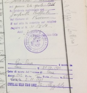 Marriage records are divided in 2 parts with the ‘allegati (attachments) in a separate register.  In Parte 1 are the marriages conducted in the Comune by the Mayor or other official and in Parte 2 the marriages conducted in the Comune offices by a person authorized by the State (A minister or Rabbi).   If the marriage takes place in another Comune this is written in section B.  In section C are those marriages that are conducted by the Mayor or other official outside the Comune offices, (in a park or private chapel) those celebrated where death of one party is imminent, or where one party is a proxy (another person stands in for the bride or groom who is in another country) or that takes place outside the country and finally, the record of the dissolution of a marriage.